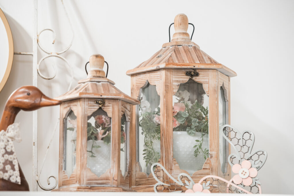 Add Stability: If the shade is wide or top-heavy, consider inserting floral foam or a small glass vase inside to support your arrangement. This also makes it easier to change flowers seasonally. I chose to keep mine empty because I am placing them in lanterns and cloches.